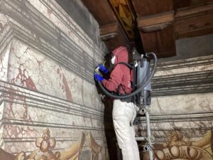 La Basilica di San Vitale, una delle più antiche di Roma e risalente al IV secolo d.C., è oggetto di importanti interventi di manutenzione straordinaria e restauro da parte della Soprintendenza. Si stanno effettuando, con fondi ordinari FEC, la revisione di tutte le coperture a falda e dei relativi sistemi di smaltimento delle acque meteoriche della basilica e della terrazza della canonica; sostituzione degli infissi; restauro dei prospetti esterni; opere di bonifica dall’umidità e interventi di razionalizzazione di parte dell’impiantistica esistente. In parallelo, con il finanziamento PNRR si effettua il completamento del restauro delle superfici del portico di ingresso mentre alll’interno della chiesa saranno eseguiti: interventi estesi di restauro dei dipinti murali parietali, con particolare riferimento a quelli della controfacciata, gravemente danneggiati; verifica dello stato di conservazione del cassettonato ligneo e puntuali interventi di restauro su parti ammalorate o fragili; interventi di restauro dei dipinti murali parietali, localizzati sul lato sinistro nei pressi della sagrestia e nella zona presbiteriale; interventi di consolidamento e restauro di elementi decorativi plastici (particolarmente ammalorati quelli dell’area presbiteriale); pulitura del portale d’ingresso alla sagrestia; spolveratura e pulitura dei quattro altari in marmo e pietra collocati nella navata centrale; rifacimento degli impianti di illuminazione. Inoltre, verrà riqualificata la sagrestia e gli spazi interni ad essa connessi, degradati dalle copiose infiltrazioni degli ultimi anni.