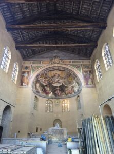 La basilica di Santa Balbina all’Aventino è un raro esempio di architettura paleocristiana, risalente al IV-V secolo, con successive trasformazioni medievali e barocche. L’edificio conserva importanti affreschi absidali — il cui restauro è stato completato nel 2025 (si veda BASILICA DI SANTA BALBINA #1) — pavimentazioni antiche e arredi liturgici di pregio, che testimoniano l’evoluzione della liturgia e della decorazione ecclesiastica. Il progetto prevede interventi di messa in sicurezza e consolidamento strutturale, il restauro delle superfici decorate e degli elementi architettonici interni, nonché la valorizzazione degli spazi liturgici e museali. Sarà migliorata la fruibilità del complesso attraverso interventi su impianti, percorsi e accessibilità. Inserito nel programma Caput Mundi – Next Generation EU, l’intervento ha l’obiettivo di restituire alla comunità un bene di rilevante valore storico-artistico e spirituale, potenziando la funzione culturale e turistica della basilica.