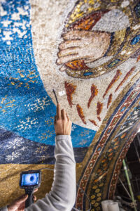 Tra i santuari martiriali sorti lungo le vie consolari, il complesso monumentale di Sant’Agnese fuori le Mura occupa un ruolo di primo piano nel panorama storico-artistico romano. Oltre alla basilica, il complesso comprende i resti della basilica costantiniana, il Mausoleo di Santa Costanza, celebre per la decorazione musiva del IV secolo, e la catacomba di Sant’Agnese. La basilica attuale fu edificata nel VII secolo durante il pontificato di Onorio I e interessata da importanti interventi in età moderna, in particolare nel XVII e nel XIX secolo sotto Pio IX. Negli ultimi anni sono stati eseguiti restauri mirati alle coperture, all’altare maggiore e ad alcune cappelle; resta tuttavia necessario un intervento organico sulla navata maggiore e sull’area absidale. Qui si conservano il prezioso mosaico del VII secolo con Sant’Agnese tra due pontefici e il rivestimento marmoreo coevo del tamburo, oggi compromessi da depositi, fratture e stuccature incongrue, così come le decorazioni pittoriche ottocentesche della navata, realizzate a tempera e fortemente deteriorate. L’intervento è finalizzato alla tutela e alla valorizzazione del complesso, attraverso il restauro degli apparati decorativi e degli intonaci, preceduto da rilievo laser scanner 3D e verifiche statico-sismiche, con l’obiettivo di scongiurare la perdita di elementi di straordinaria rilevanza storico-artistica.
