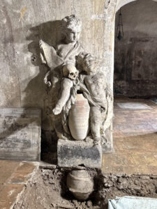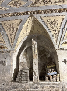 La Chiesa delle Sacre Stimmate di San Francesco sorge nel cuore di Roma, su un’antica area sacra precedentemente occupata dalla chiesa dei Santi Quaranta Martiri. Ricostruita all’inizio del XVIII secolo per volontà di papa Clemente XI e affidata alla Confraternita delle Stimmate, la chiesa custodisce nella sua cripta un raro esempio di ossario decorato. L’ambiente ipogeo, risalente al XVII secolo, presenta un apparato ornamentale unico costituito da composizioni di ossa umane disposte secondo motivi geometrici e floreali. Il progetto prevede il restauro conservativo degli apparati decorativi della cripta, gravemente compromessi dall’umidità di risalita, e la valorizzazione dell’intero ambiente ipogeo, con l’obiettivo di consentirne la riapertura al pubblico. Gli interventi mirano alla conservazione delle strutture, al miglioramento delle condizioni microclimatiche e all’implementazione di percorsi di visita in sicurezza, restituendo un patrimonio di notevole valore storico, artistico e antropologico alla fruizione culturale.