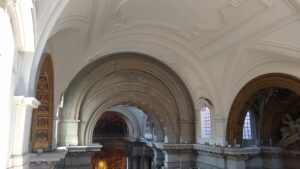 La Chiesa di Santa Maria in Campitelli, situata nel rione Sant’Angelo al ghetto di Roma, rappresenta uno degli esempi più significativi di architettura barocca. Voluta da papa Alessandro VII per custodire l’immagine miracolosa della Vergine venerata dopo la peste del 1661, fu affidata a Carlo Rainaldi che trasformò la pianta in una basilica a navata unica, accentuando lo spazio verso il fondo dove spicca la fastosa macchina barocca dorata di Giovanni Antonio De Rossi che racchiude la preziosa immagine della Madonna. La facciata in travertino, articolata su due ordini e caratterizzata da colonne staccate, dona movimento e monumentalità, integrandosi scenograficamente nel tessuto urbano, grazie alle ali laterali. All’interno, la spazialità è sottolineata da colonne e annovera importanti opere d’arte di artisti come Luca Giordano, Sebastiano Conca e il Baciccia. La chiesa ospita anche le spoglie di San Giovanni Leonardi, fondatore dei Chierici Regolari della Madre di Dio che la officiano. Il cantiere attuale prevede degli interventi di tipo strutturale ed è mirato a completare il restauro delle superfici interne della navata, in parte eseguito nei primi anni del duemila.