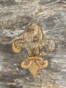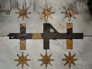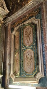 - Sportello ligneo decorato posto a copertura del reliquiario nella cappella dei Santi Ciriaco e Caterina, prima dei lavori.