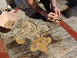 - Restauro delle lacune pavimentali: dettaglio della decorazione prima dell'intervento. — Fonte: Lares Restauri
