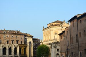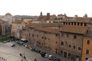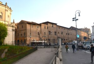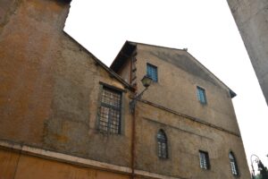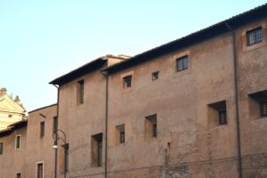 Il Monastero di Tor de’ Specchi, situato tra il Campidoglio e il Teatro di Marcello, si distingue per la sobrietà del suo prospetto affacciato su Villa Caffarelli. L’ingresso da Via del Teatro di Marcello, segnato da un portale in travertino con l’affresco settecentesco della Madonna con San Benedetto e Santa Francesca Romana, introduce alla vecchia stalla, dove sono ancora visibili strutture murarie medievali. Da qui si accede alla cosiddetta “scala Santa”, che conduce all’oratorio decorato dal celebre ciclo di affreschi del XV secolo, attribuito ad Antoniazzo Romano, raffigurante la vita e i miracoli di Santa Francesca Romana. Completano il percorso il coro della Santissima Annunziata e le raffinate sale del parlatorio, testimoni delle articolate fasi costruttive del complesso. L’intervento PNRR prevede il restauro della facciata su Via del Teatro di Marcello, comprendente strutture murarie, elementi lapidei e l’affresco, per poi proseguire con il prospetto su via Montanara.