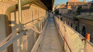 Il Palazzo fu fatto costruire dai Gaddi, ricca famiglia di mercanti fiorentini, già affermatasi in Roma sin dal ‘400. L’autore è rimasto, purtroppo, ignoto. Attraverso una riproduzione custodita nel Museo “Albertina” di Vienna, è possibile farsi un’idea delle mirabili decorazioni, con affreschi a chiaroscuro e graffiti, che impreziosivano la facciata su via della Maschera d’Oro, successivamente andate in rovina e irrimediabilmente perdute in quanto ricoperte con vernice. Il palazzo passò, successivamente, ai Rossi di San Secondo. Poi, nel 1567, il Conte Sigismondo De Rossi di Sansecondo lo rivendette ad Angelo Cesi, figlio di Giangiacomo Cesi e di Isabella di Alviano. Dai Cesi venne, quindi, dato in locazione nel 1570 a D. Ugo Boncompagni, che lo occupò fino alla sua elezione al soglio pontificio (col nome di Gregorio XIII), dopodiché tornò nella disponibilità della famiglia Cesi. Le successive vicende dell’edificio, che da allora assunse la denominazione di Palazzo Cesi, lo videro ceduto nel 1798 ad Ulisse Pentini, quindi acquistato dal barone Camuccini (figlio del celebre pittore Vincenzo), che nel 1855 lo rivendette ad un nobile britannico, il duca di Northumberland. Fu poi ceduto ai Santarelli e, infine, nel 1929, al signor Salvatore Buffardi. Nel 1940, in seguito ad esproprio, il palazzo passò al Ministero della Guerra, per essere adibito a sede del Tribunale Militare di Roma. Oggi accoglie il Consiglio della Magistratura militare e gli Uffici giudiziari militari superiori.